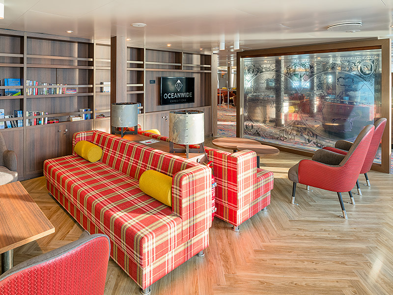 Scheepsbibliotheek Vlak naast de Observation Lounge op dek 5 bevindt zich de bibliotheek met een uitgebreide collectie aan poolliteratuur. Hier geniet je van rust of een partijtje schaak.